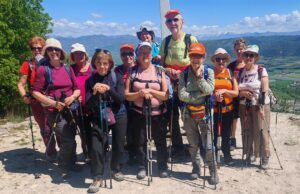 Nous attaquons le massif par l’ouest et le nord. Ascension ombrée et très agréable, très progressive, au milieu des thyms, des romarins et des amélanchiers en fleurs, d’abord par une piste régulière puis par un chemin plus cahoteux. À notre arrivée sur le plateau, vue magnifique sur tout un cirque de montagnes, avec, au premier plan, la montagne de Lure en majesté. Nous obliquons alors vers l'extrémité Est du plateau, en longeant les ruines d’un très ancien village.