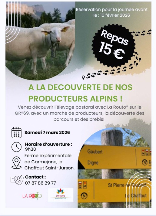 Ami(e)s randonneurs(ses), nous sommes trois étudiantes en BTSA Productions Animales au lycée agricole de Carmejane sur la commune du Chaffaut-Saint-Jurson. Dans le cadre de notre formation, nous organisons le 7 mars prochain une randonnée conviviale sur le GR69, à la rencontre des troupeaux ovins, en partenariat avec La Routo. Ce projet a pour objectif de faire découvrir le pastoralisme, l’élevage ovin et le métier de berger. Cette journée sera l’occasion de partager un moment en pleine nature, d’aller à la rencontre des troupeaux, d’échanger autour du quotidien des bergers, de mieux comprendre le rôle essentiel du pastoralisme sur nos territoires, et de découvrir la ferme expérimentale de Carmejane à travers différents ateliers.